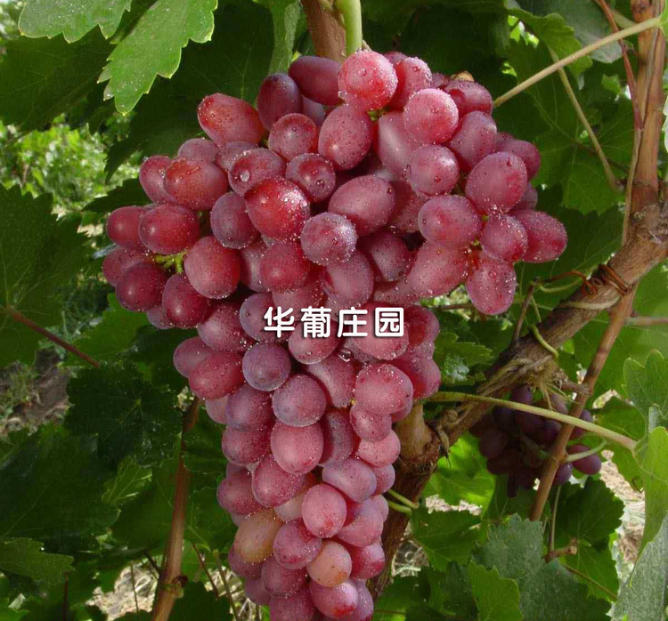 克瑞森:是美國加州繼紅提葡萄之后推出的又一無核葡萄品種。1997年由農業(yè)部葡萄新品種項目課題組引進我國,經過4年在國內試種,我國葡萄專家在綜合考察其生長狀況、果實性狀和市場前景后認為,該品種是較有發(fā)展?jié)摿Φ臒o核葡萄品種。果實亮紅色,充分成熟后為紫紅色,上有較厚白色果霜,橢圓形。果穗中等大,有歧肩,圓錐形。平均穗重500克。果肉淺黃色,半透明肉質,果肉較硬,果皮中等厚,不易與果肉分離,味甜,低酸,品質極佳。 |